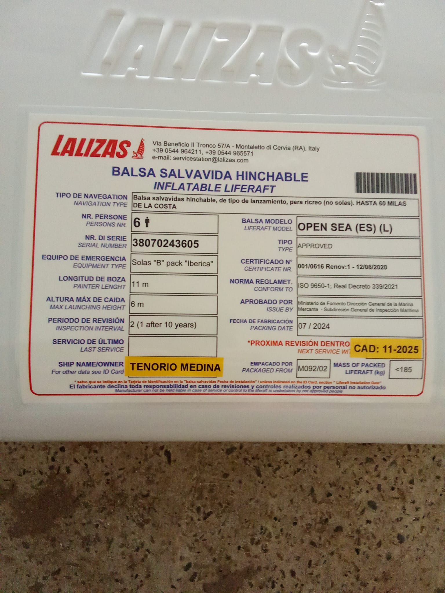 Por último, se han realizado, en ambos buques las pruebas y puesta en marcha, verificado por el fabricante/instalador, mediante prueba hidrostática la estanqueidad de las nuevas estructuras. También se han instalador las nueva balsas salvavidas en los lugares más idóneos para su uso rápido ante una situación de emergencia.